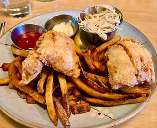 Fish and chips are a basic staple in any seafood place, so we gave it a whirl. The fish came out nice and hot, along with plain fries and coleslaw. We tried one obligatory bite of the slaw (I mean, it barely makes the ranks of a “side” yet there it is, staring us.) The plain fries were great, and the fish was fresh and delicious.